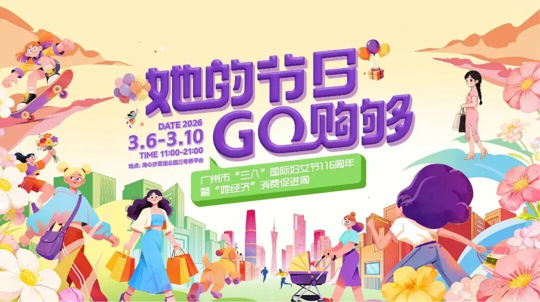 广州市妇联精心准备“她的节日,GO购够”广州市“三八”国际妇女节“她经济”消费促进周,于3月6日至10日在海心沙亚运公园三号桥平台活力开启,活动精心策划了五大市集+六大活动,将传统促销升级为“女性价值展示平台”“悦己生活体验窗口”和“城市商业文化名片”。