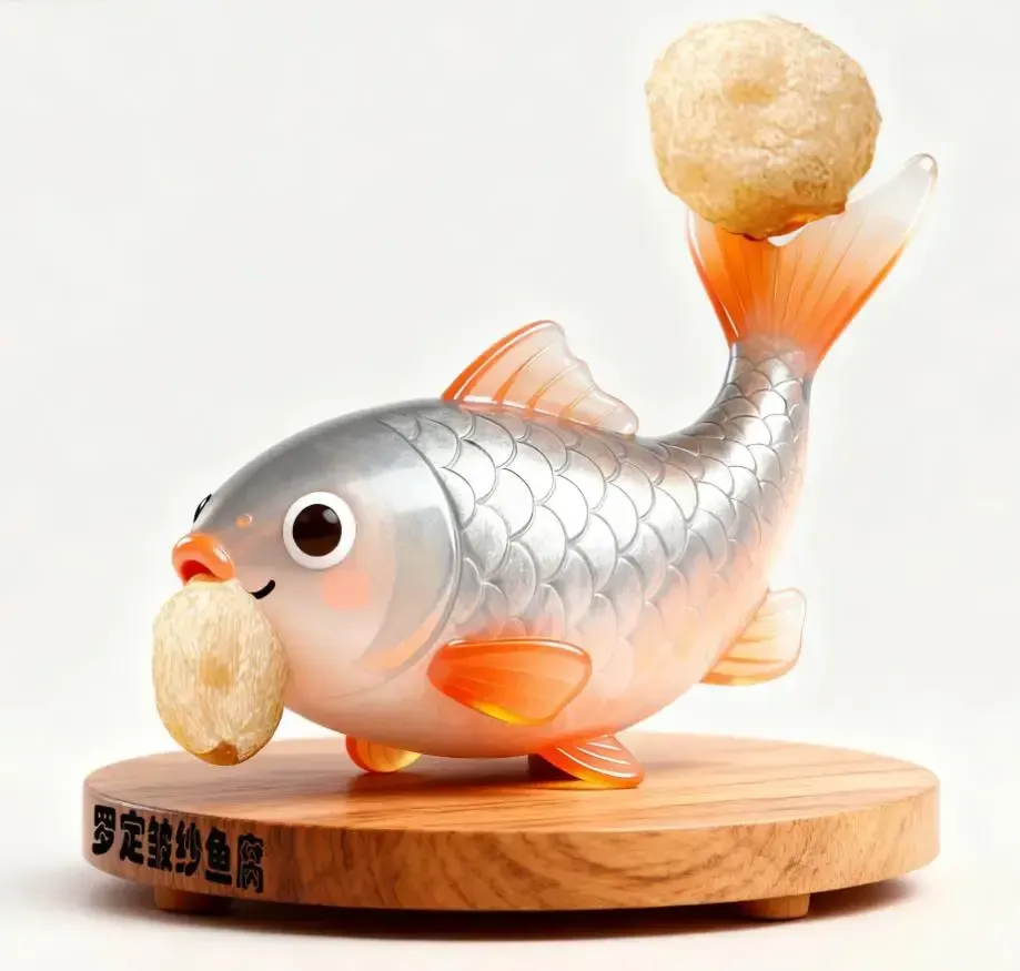 本次品牌升级深度挖掘了罗定独特的地域文化内涵。罗定稻米新形象以山水为骨、稻穗为魂,将“天赐罗定,米中真味”的自然禀赋可视化。罗定皱纱鱼腐则巧妙融合“鱼跃龙门”的吉祥寓意与“皱纱”工艺特色,展现“匠心手作,鱼鲜腐香”的品牌承诺。